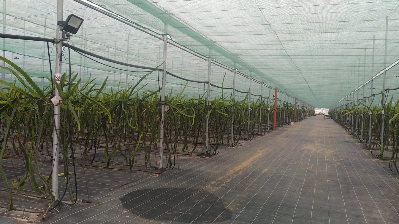Vermits de Pithaya in principe een schaduwplant is, staan de planten in een serre met schaduwdoeken om zo de planten in de beste omstandigheden te laten groeien.